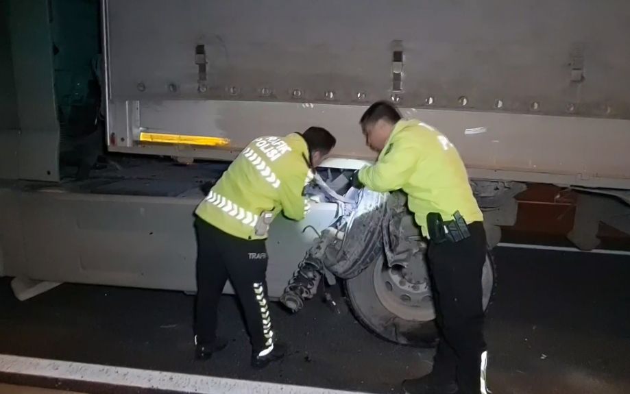 Kazanın şiddetiyle otomobil savrularak metrelerce takla attı ve devrildi. Çarpışma sonucunda otomobilin kopan bir tekerleği, tırın dorsesinin altına sıkıştı.