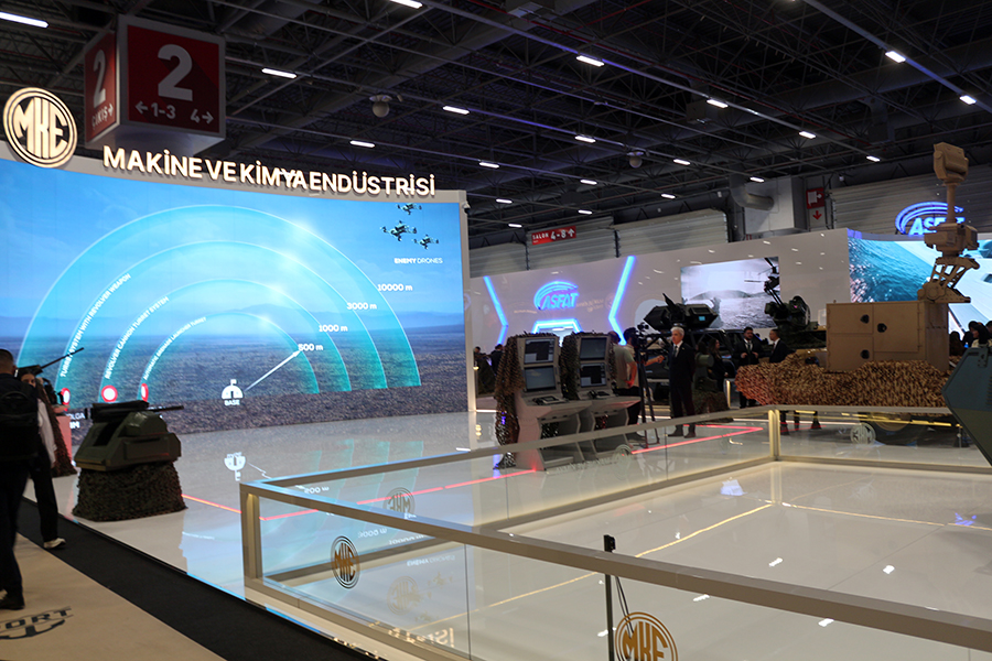 Mini ve mikro İHA tehditlerine karşı geliştirilen DSS; radar, elektro-optik ve karıştırıcı sistemlerle başlayan, 40 mm antidrone mühimmatına kadar uzanan beş katmanlı yapısıyla dikkat çekti. Ziyaretçilerin en çok ilgi gösterdiği noktalardan biri, aynı anda 100 hedefi takip edebilen radar yapısı ve 35 mm TOLGA revolver sistemin sergilendiği alan oldu.