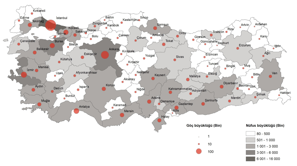 Türkiye İstatistik Kurumu’nun (TÜİK) 2024 yılına ilişkin yayımladığı “İç Göç İstatistikleri” bültenine göre, Türkiye genelinde geçen yıl 2 milyon 682 bin 673 kişi iller arasında göç etti.
